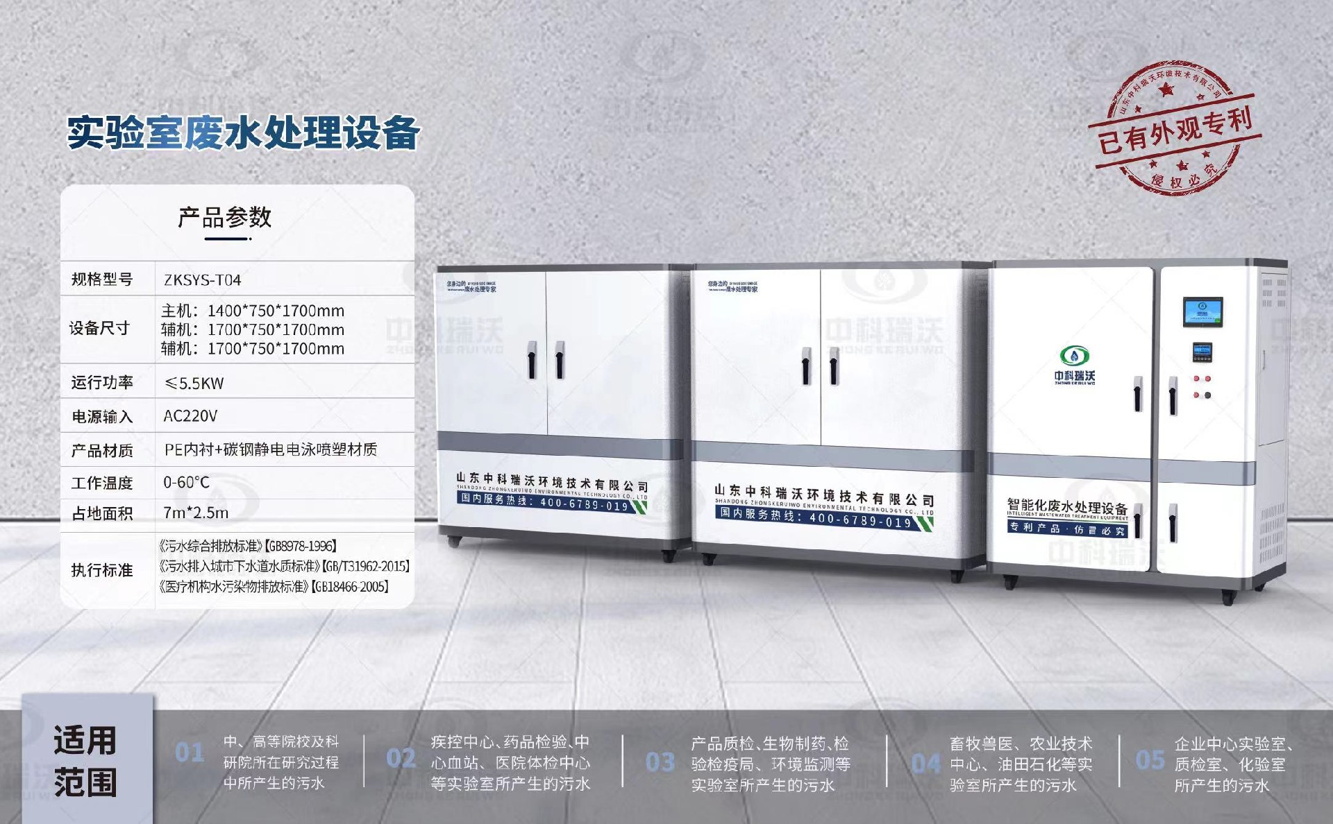 該設備被廣泛應用于中、高院校、科研院所、醫療機構、生物制藥、疾控中心、環監、產品質檢、檢疫檢驗、藥品檢驗、血站、畜牧、P4、石油化工、企業等實驗室、化驗室的有機類廢水處理,憑借穩定性能,優質處理結果,受到廣大客戶的一直好評。